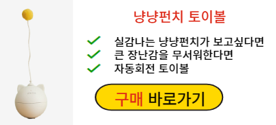 냥냥펀치가 보고싶다면 망설이는건 시간낭비인 자동 장난감입니다. 무작위로 360도 회전을 하면서 고양이의 취향에 맞게 달린 패브릭 공이나 깃털이 흔들리는 걸 본다면 고양이들은 냥냥펀치를 참을 수 없기 때문입니다. 큰 장난감에 겁내하는 고양이도 냥냥펀치 토이볼은 가볍게 즐길 수 있습니다.